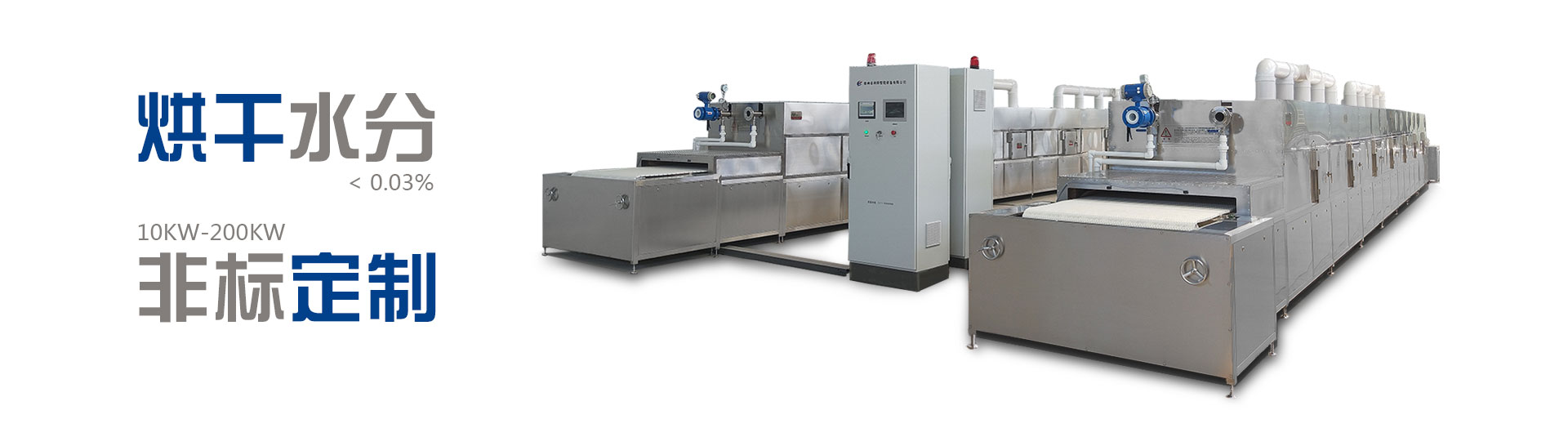 微波干燥是物料中水分大量吸收微波能,使分子間產生急劇的摩擦碰撞,呈現顯著的熱效應,物料表面和內部的溫度同時迅速升高,蒸發物料中的水分,從而將微波能轉化為熱能進行物料干燥。